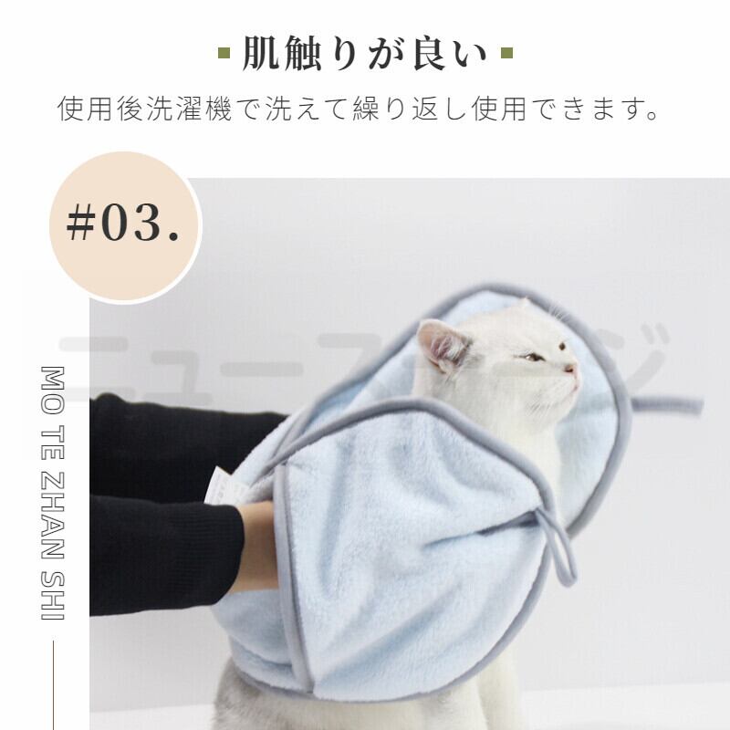 包み込むように拭いてあげるだけで、たっぷり超吸収のふんわり柔らか厚手のペット用タオル。